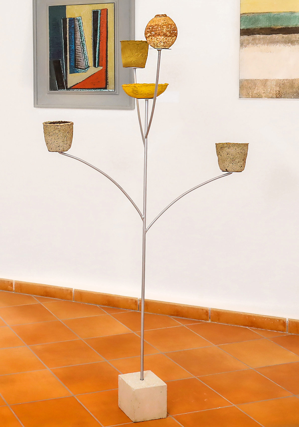 Tecnica: FERRO CROMATO, CARTAPESTA, ARGILLA ROSSA, PIGMENTI, VERNICI