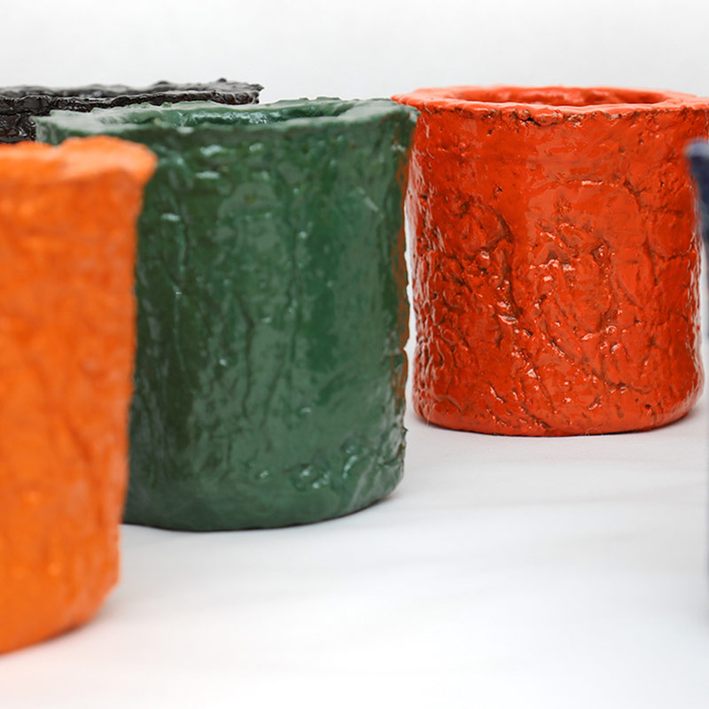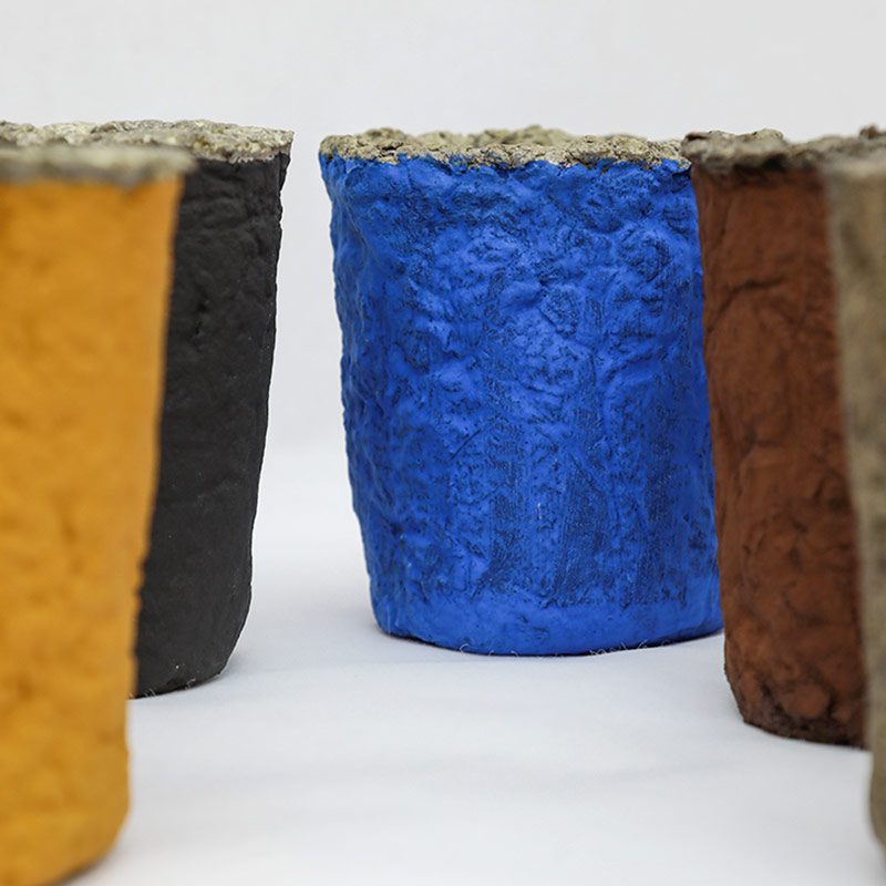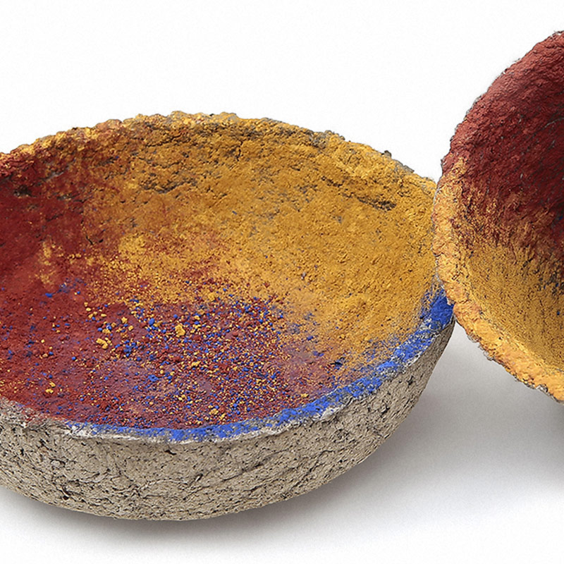 MATER MATERIA è un lavoro che si estende nell’arco di tempo che va dal 2015 al 2020, e, probabilmente avrà ulteriori sviluppi. Si rifà, come è evidente nel titolo, al concetto di Materia, ma anche di Mater. In questa fase il corpo-vaso diventa tridimensionale. Le forme assunte dalla Materia variano, sia in relazione al colore, sia in relazione alla composizione della Materia, mischiata, di volta in volta, ai pigmenti, a composto organico, all’argilla.